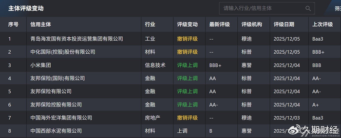 上周共有8家企业评级发生变动,其中多家企业评级获上调。