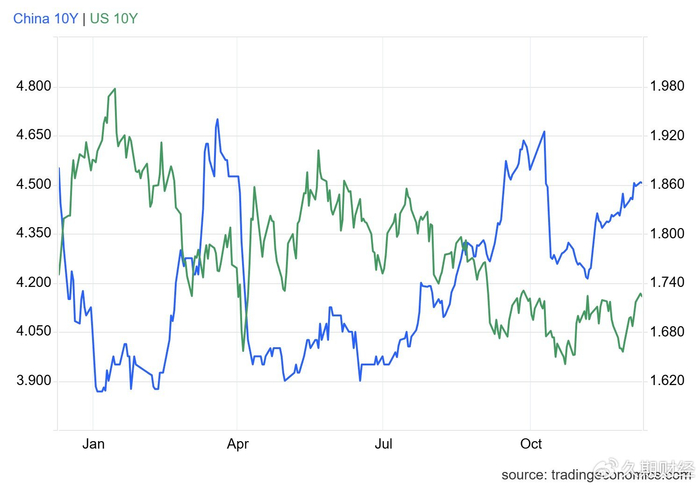 截至12月8日,中国二年期国债收益率为1.40%,中国十年期国债收益率为1.85%。
