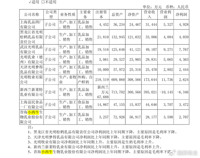 另一边,“趣解商业”注意到,2025年半年报中,光明乳业提到旗下几个乳品公司的毛利水平下滑,这其中就包括小西牛。光明乳业在2025年半年报中表示,小西牛净利润比上年同期下降,主要原因是毛利率下降。