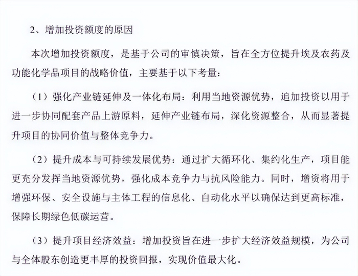 具体来看,泰禾股份拟将“嘧菌酯原药项目”投资总额由2.29亿元增加至3.97亿元,其中募集资金投入总额由1.8亿元增加至2.46亿元。