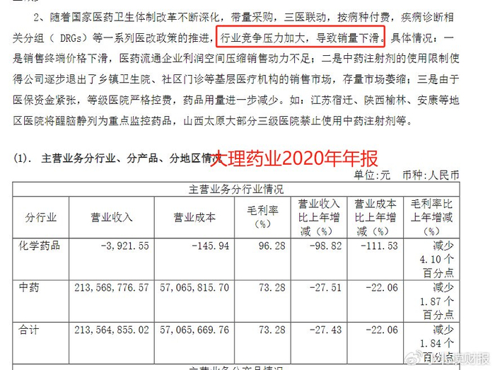 一句话总结:因为两票制推行,大理药业对下游卖方的议价能力变弱了,或者说下游变得强势了。