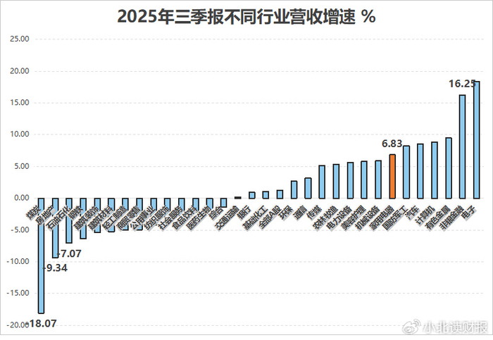 从同花顺板块数据浏览器中提取的数据计算得出,今年三季报家电板块营收增速为7.71%,跟前面的6.83%有所出入,跟计算口径有关,不影响我们分析结论的得出。