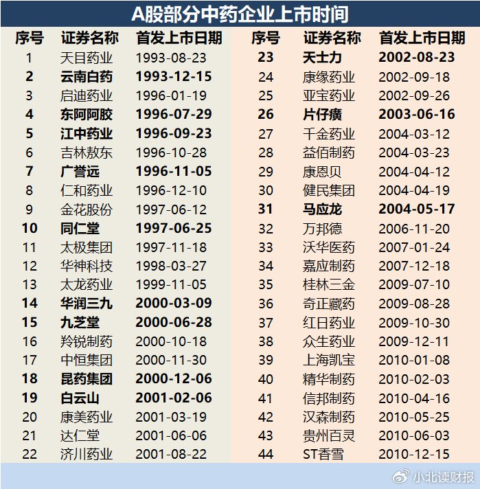 当前市场上排名靠前的中药企业,几乎全都在2000年以前完成了上市;而这段中药企业集中上市的历史,跟当时A股的上市制度有关系。