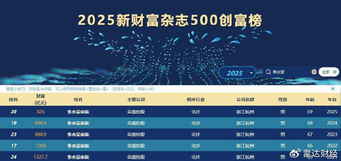 前不久,备受瞩目的《2025新财富500创富榜》正式揭晓,多次问鼎浙江萧山首富的荣盛控股创始人李水荣,凭借826亿元的最新财富位列榜单第28位。