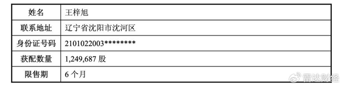 据宏和科技公告披露的信息,王梓旭出生于2003年,是辽宁省沈阳市和平区人,联系地址则为沈阳市沈河区。