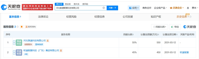 雷达财经讯,天眼查App显示,近日,河北数通智算科技有限公司成立,法定代表人为曹伟,注册资本1000万人民币,经营范围包括数据处理和存储支持服务、人工智能公共数据平台、云计算装备技术服务等。股东信息显示,该公司由河北骐通科技有限公司、软通动力(301236)旗下软通智算科技(广东)集团有限公司共同持股。