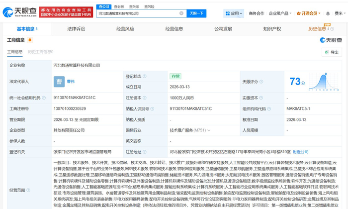 软通动力等在河北成立智算科技公司 注册资本1000万