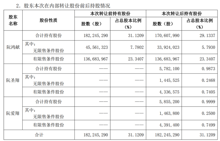 阮鸿献向女儿转让股份传递出家族成员接班的信号。