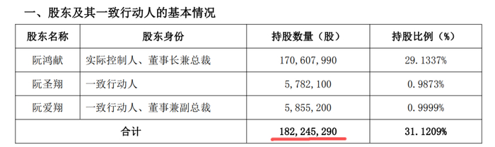 截至本公告披露日,阮鸿献持有一心堂1.7亿股,占公司总股本的29.13%,两位女儿分别持有约1%的股份,合计31.12%。