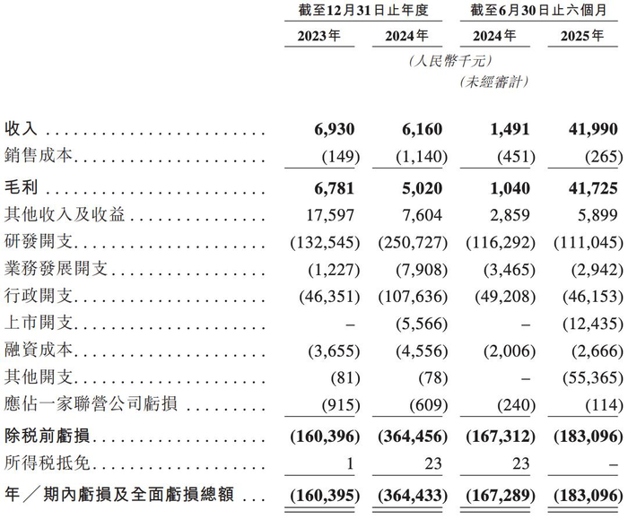 2023年、2024年度和2025年前六个月,宝济药业的营收分别约为693.0万元、616.0万元和419.9万元,毛利分别约为678.1万元、502.0万元和4172.5万元,净亏损分别为1.60亿元、3.64亿元和1.83亿元。