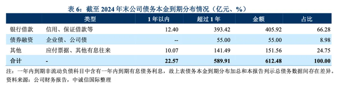 其中占比较大的项目包括:其他应付款76.54亿元;应付账款69.75亿元。长期借款393.42亿元;长期应付款366.20亿元,2024年大幅增长,增长约3667.5倍,主要系新增保险债权计划,以及收到的政府专项债资金由其他应付款调整至该项所致。