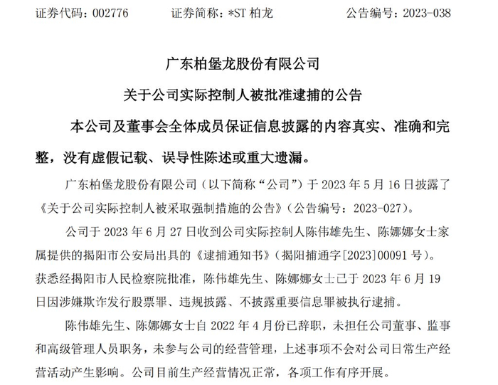 2 、柏堡龙因为欺诈发行等被证监会查处后,此前实际控制人陈伟雄陈娜娜夫妇被逮捕。投资人对公司举行了集体诉讼,而中兴财光华会计所是连带执行。