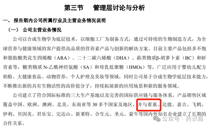 嘉必优在2024年年报中指出,国际化是公司战略的重要组成部分,随着 2023 年 6 月帝斯曼 ARA 全球专利逐步到期、国际市场逐步开放,雀巢、达能、新莱特等知名企业合作稳步推进,公司将持续加大国际市场开发力度。