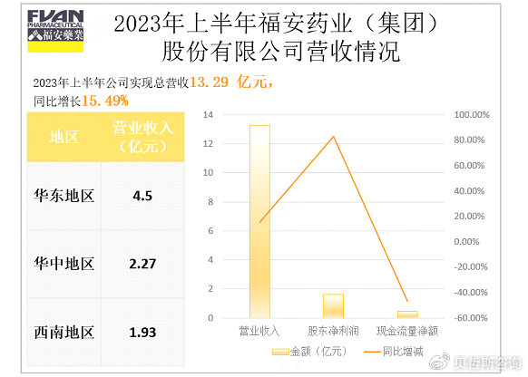 福安药业(集团)股份有限公司主要从事化学药品的研发、生产、销售。公司拥有药品研发、医药中间体、原料药、制剂生产和销售的完整产业链布局,产品涉及抗生素类、抗肿瘤类、特色专科药类等多个类别药品,销售业务覆盖国内大多数省份,同时有产品出口业务。其中,公司原料药及中间体产品在2023年1-6月实现营业收入4.3亿元,较上年同期增长26.51%。