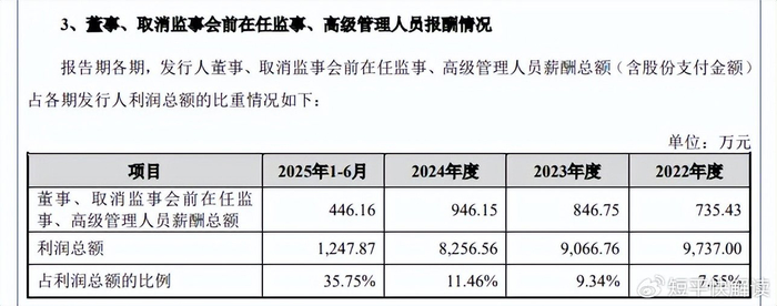 据短平快解读了解,不同于业绩波动,公司董监高薪酬(含股份支付金额)稳增,报告期内分别为735.43万元、846.75万元、946.15万元446.16万元,占利润总额比例分别为7.55%、9.34%、11.46%、35.75%。