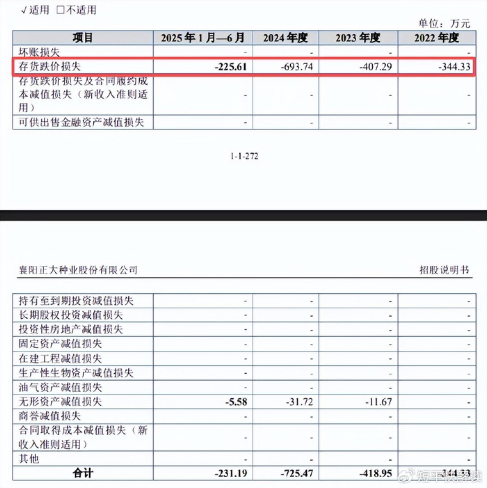 存货保持在高位,跌价损失有所增长。报告期内,正大种业存货保持在高位,分别为1.02亿元、1.36亿元、1.31亿元、1.02亿元,存货周转率分别为1.7、1.92、1.57、0.36。