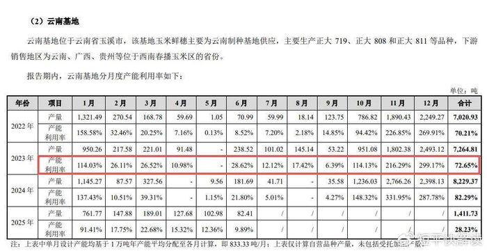 另外,公司在申报稿称“现有的种子加工中心生产能力日渐饱和”的表述也引起北交所关注,要求说明是否符合《北京证券交易所上市公司持续监管指引第9号——募集资金管理》等相关要求,公司称加工时间段高度集中于每年10月至次年1月,年度内产能分布不均:加工旺季时产能利用率较高,而加工淡季时产能利用率则较低,随后在上会稿中删除相关表述。