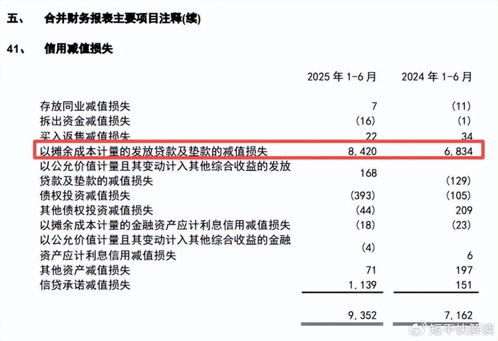 2025年中报显示,发放贷款及垫款的减值损失为84.2亿元,同比增加15.86亿元,增幅23.21%,显然需要进一步强化贷款质量,从而减少相关损失。