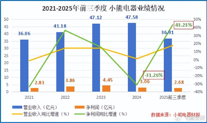 小熊电器用成绩回答了这个问题:2025年前三季度,公司净利润强势扭转,金额2.68亿,同比大增43.23%。