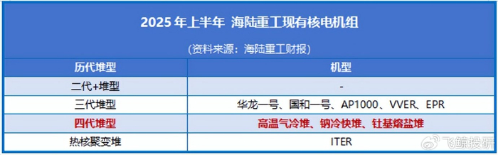 包括成熟的二代+;风头正盛的包括华龙一号、国和一号等在内的三代堆;0-1爆发阶段的钍基熔盐堆在内的四代堆,以及未来的终极能源堆——ITER在内的热核聚变。
