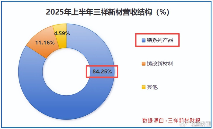 公司从1988年一出生就坚定不移地切入锆系新材料,先后布局了海绵锆、氧氯化锆、纳米复合氧化锆等。到2025年上半年,锆系列产品依旧是其核心支柱,收入占比在80%以上。