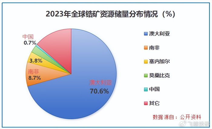 2023年的数据显示,全球锆矿储量约6800万吨(以ZrO₂计),但分布不均,澳大利亚和南非合计掌控了近80%的储量。