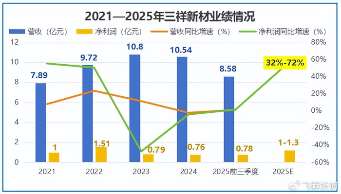 也是随着固态电池材料以及核级海绵锆等高端业务的逐步放量,2025年三祥新材预计全年净利润达1-1.3亿元,同比增长31.99%-71.58%。