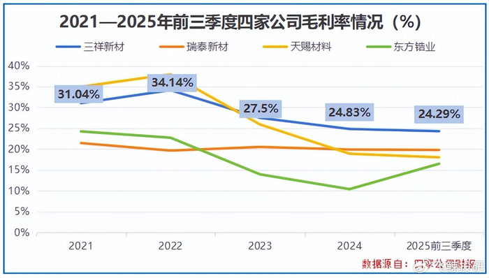 数据说话,2023-2025年前三季度,三祥新材的毛利率持续高于东方锆业、天赐材料等同样布局固态电池材料的玩家。