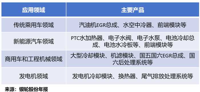 目前,银轮股份的产品配套种类完整,能够为客户提供从发动机、电池、电机、电控到车身热管理、尾气处理的全系列产品,是热管理领域产品品类最齐全的供应商之一。