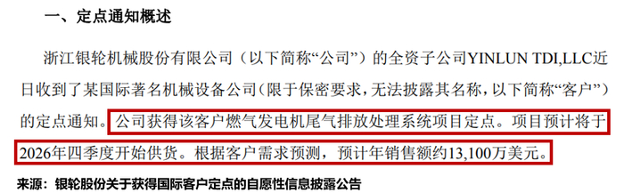 该项目将于2026年四季度开始供货,根据客户需求预测,预计年销售额约1.31亿美元(约9.3亿元人民币)。