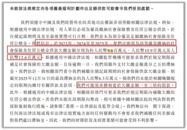 招股书披露,报告期内公司未为部分雇员足额缴纳社保及住房公积金,三年累计欠缴金额估算约3310万元。若被监管部门责令补缴,还可能面临巨额滞纳金甚至罚款。