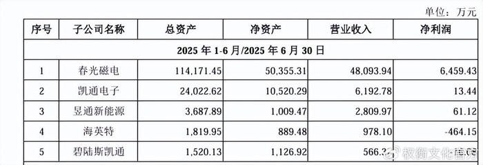 截至招股说明书签署日,春光集团拥有4家一级全资子公司,1家二级全资子公司;其中仅春光磁电有大额的净利润收入。