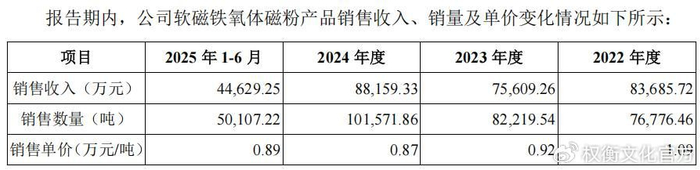 其中,2023年毛利率提升主要系上游原材料价格大幅下降带动主要产品磁粉毛利率提升所致。公司的产品价格和毛利率水平主要受上游原材料价格、市场供需情况等多种因素的影响。
