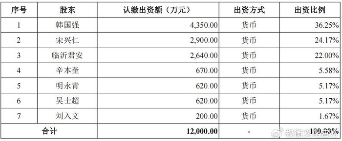 权衡财经iqhcj注意到,截至招股说明书签署日,韩卫东直接持有公司34.04%的股份,同时通过临沂君安间接控制公司21.48%的表决权,合计控制公司55.52%的表决权,为公司的实际控制人。