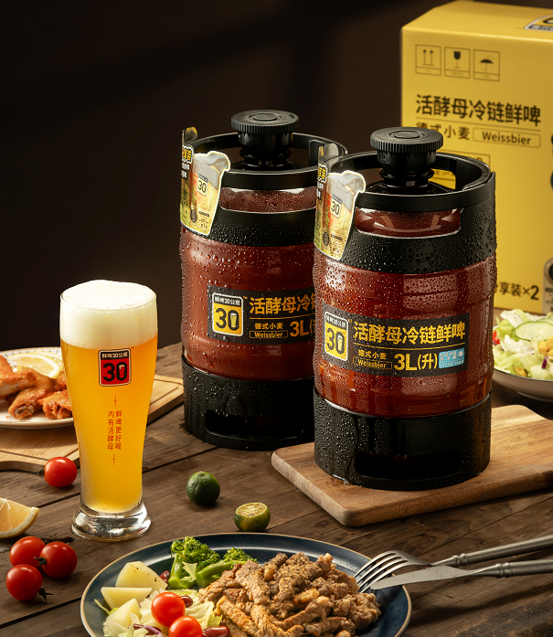 依托35年装备制造积淀,2024年,公司成功研发出专利风冷扎啤机,解决了传统设备打酒时间长、容易起泡、酒损较高、需要常清洗等痛点;公司开发的高阻隔pet材料技术,成功实现大规模生产一次性扎啤桶,解决了扎啤无法远距离销售、需要大量储存场地以及存在清洗不干净风险等行业难题。此外,公司研发的鲜啤无菌灌装技术,将鲜啤的保质期提高到90天。“鲜啤生产要求从酿造到发酵的全流程杜绝微生物污染。我们凭借现代化技术与装备,实现了鲜啤保质期的重大突破。”黄粤宁强调。基于突出的技术优势和长期的研发投入,鲜啤30公里的产品已完全符合“不杀菌、不过滤、内含活酵母”等优质鲜啤标准。