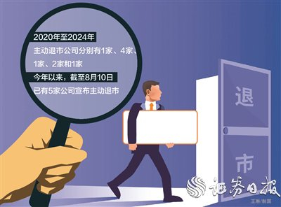 Wind资讯数据显示,2020年至2024年,主动退市公司分别有1家、4家、1家、2家和1家;今年以来截至8月10日,已有5家公司宣布主动退市。