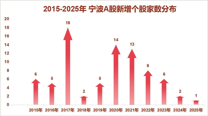 2015年以来,A股“宁波军团”快速扩容,年均新增超7家。其中,2017年IPO企业达18家,2020年、2021年分别为14家、13家。