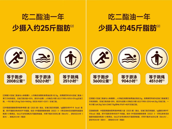 值得一提的是,市面上的甘油二酯食用油并不“纯”,除了甘油二酯之外,还含有普通食用油中的主要成分——甘油三酯。以“善百年甘油二酯食用油40%”为例,根据其成分表,产品中甘油二酯含量≥40%,而甘油三酯含量≤58%。