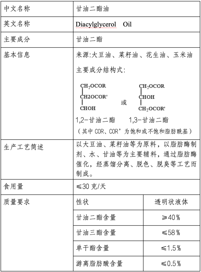 根据国家卫健委规定,甘油二酯油的甘油二酯含量需达到40%以上,但消费者需要注意的是,尽管部分商家表明吃甘油二酯油能减肥,但食用甘油二酯食用油仍会摄入一定含量的甘油三酯,多吃也会导致发胖。