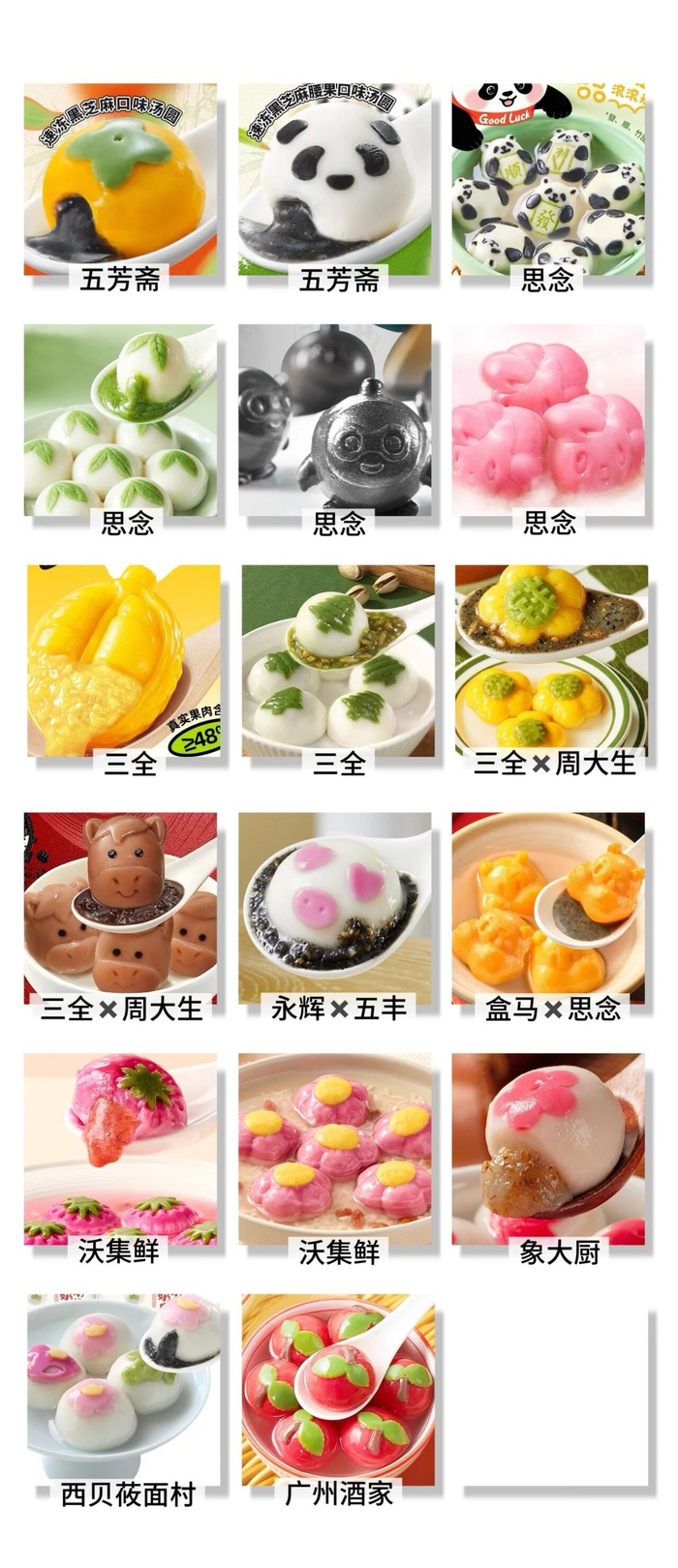 口味上,更是“万物皆可包”。例如,西贝莜面村推出蒙古奶皮子牛奶汤圆,将这两年火出天际的奶皮子元素包进汤圆;三全联合周大生推出的“马到成功”奥巧味汤圆,引入奥利奥巧克力碎,实现“饼干+汤圆”的跨界。此外,汤圆还有龙井茶、桂花、腰果、开心果、草莓、樱花等诸多不寻常口味。