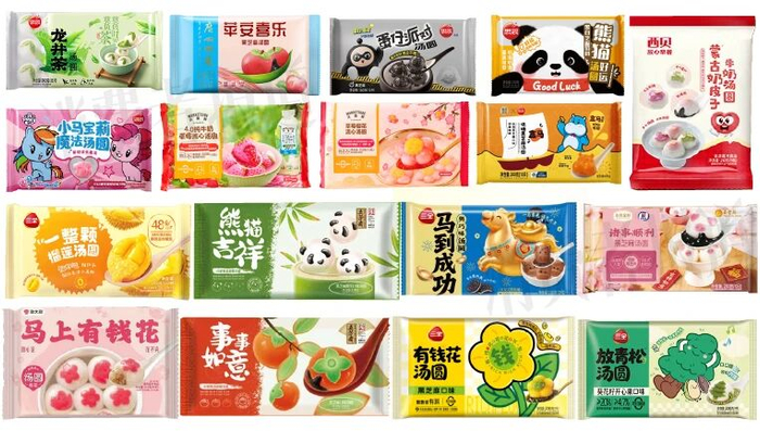 造型上,今年汤圆主打“万物皆可造”。适逢马年,生肖马成为创意造型的C位元素,如思念联名小马宝莉推出魔法草莓款,三全携手周大生打造“马到成功”奥巧味,盒马则与思念联合推出采用3D立体成型技术的“盒马头”低糖黑芝麻汤圆。熊猫元素也未缺席。思念“熊猫好运”汤圆、五芳斋“熊猫吉祥”汤圆不约而同走起了讨喜的国宝造型。