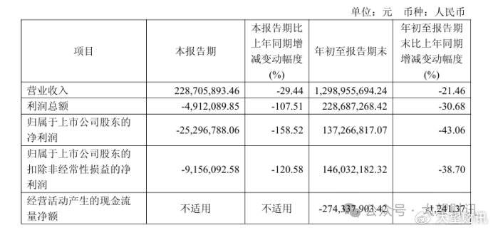 在第三季度,伊力特营业收入约2.29亿元,同比下降29.44%;归属于上市公司股东的净利润亏损约2529.68万元,同比下降158.52%。