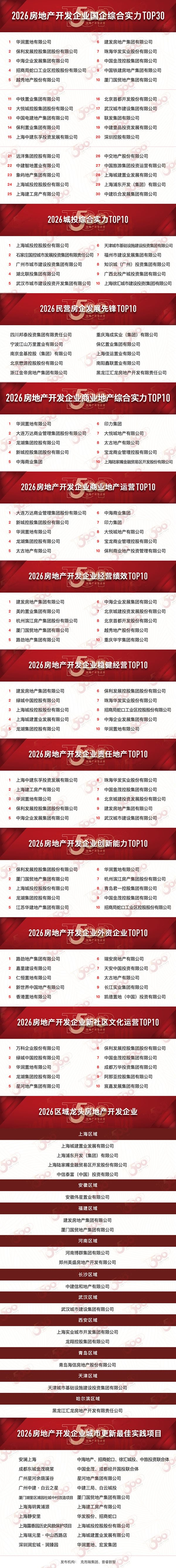 3月18日,2026房地产开发企业综合实力研究成果正式发布,备受关注的“房地产开发企业综合实力TOP500”等榜单揭晓。这项由中国房地产业协会主持、上海易居房地产研究院支持的研究工作连续开展了18年,相关研究成果已成为全面评判房地产开发企业综合实力及行业地位的重要标准。