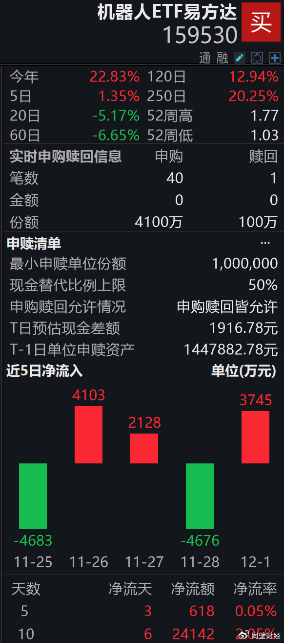 机器人ETF易方达(159530)场外也有基金份额:(联接A:020972、联接C:020973)。