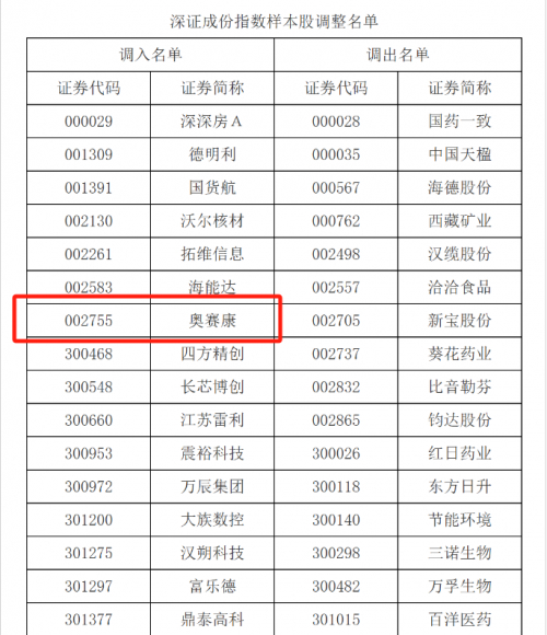 此次调整中,奥赛康(002755.SZ)凭借稳健的经营业绩、在医药领域的创新实力以及日益凸显的产品商业化落地能力,成功入选为深证成指样本股之一。这不仅体现了资本市场对公司基本面与行业地位的高度认可,也标志着公司有望借此进一步提升市场流动性、优化投资者结构,并获得更多中长期资金的关注,为未来高质量发展注入新的资本活力。