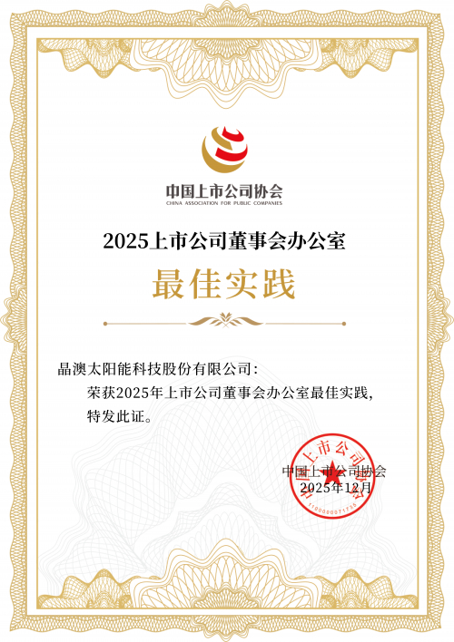 荣誉既是肯定,更是前行的动力。未来,晶澳科技将继续以规范的公司治理与信息披露为依托,全方位深度挖掘资本市场潜力,通过多渠道、多方式深化与投资者的交流互动,高效传递公司核心价值,不断增强资本市场对公司的认可与信任。同时积极践行企业社会责任,为资本市场的健康发展贡献晶澳力量。