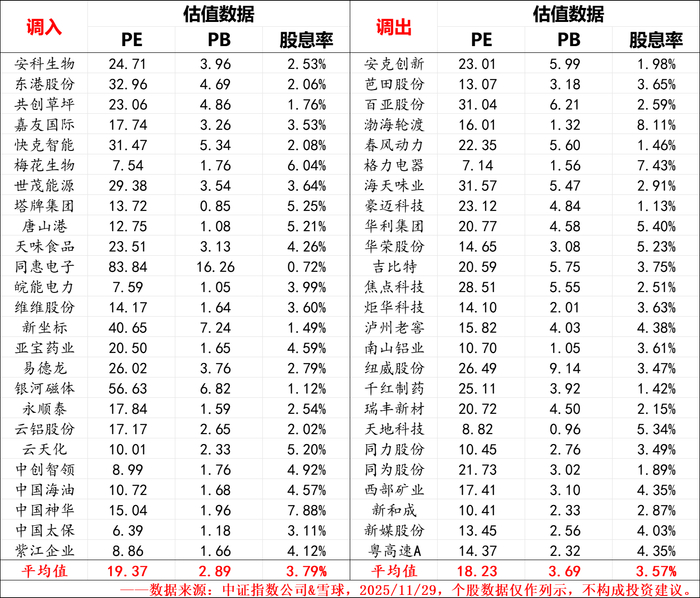 1、数据来源于中证指数公司&雪球,2025/11/29,手工整理可能存在错漏,请自行甄别;