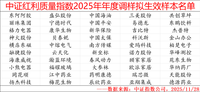 附件一:中证红利质量指数2025年年度调样拟生效样本名单