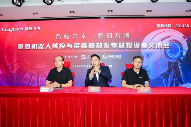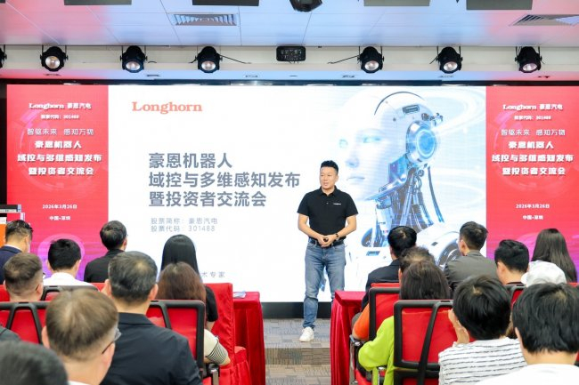 2026年3月26日,豪恩汽电(301488.SZ)在深圳举办“智驱未来 感知万物”主题新品发布会,面向全球客户与投资者集中展示了其在机器人域控与多维感知领域的最新成果。来自产业链合作伙伴及投资机构的嘉宾齐聚一堂,共同见证这家智能感知龙头企业的技术跃迁与战略升级。