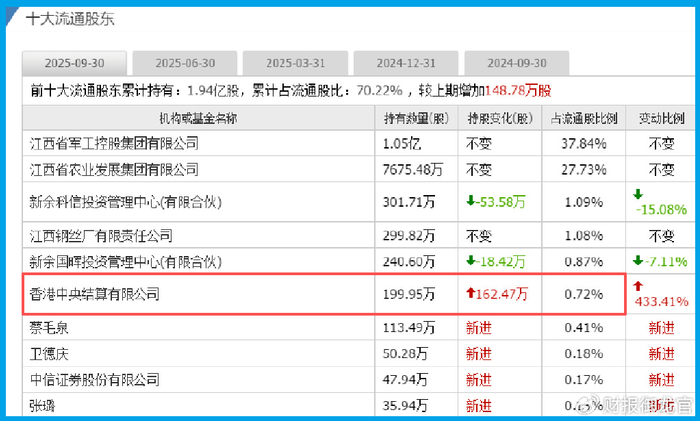 但蹊跷的是,香港中央结算公司却在逆势加仓,增持幅度高达433.41%。